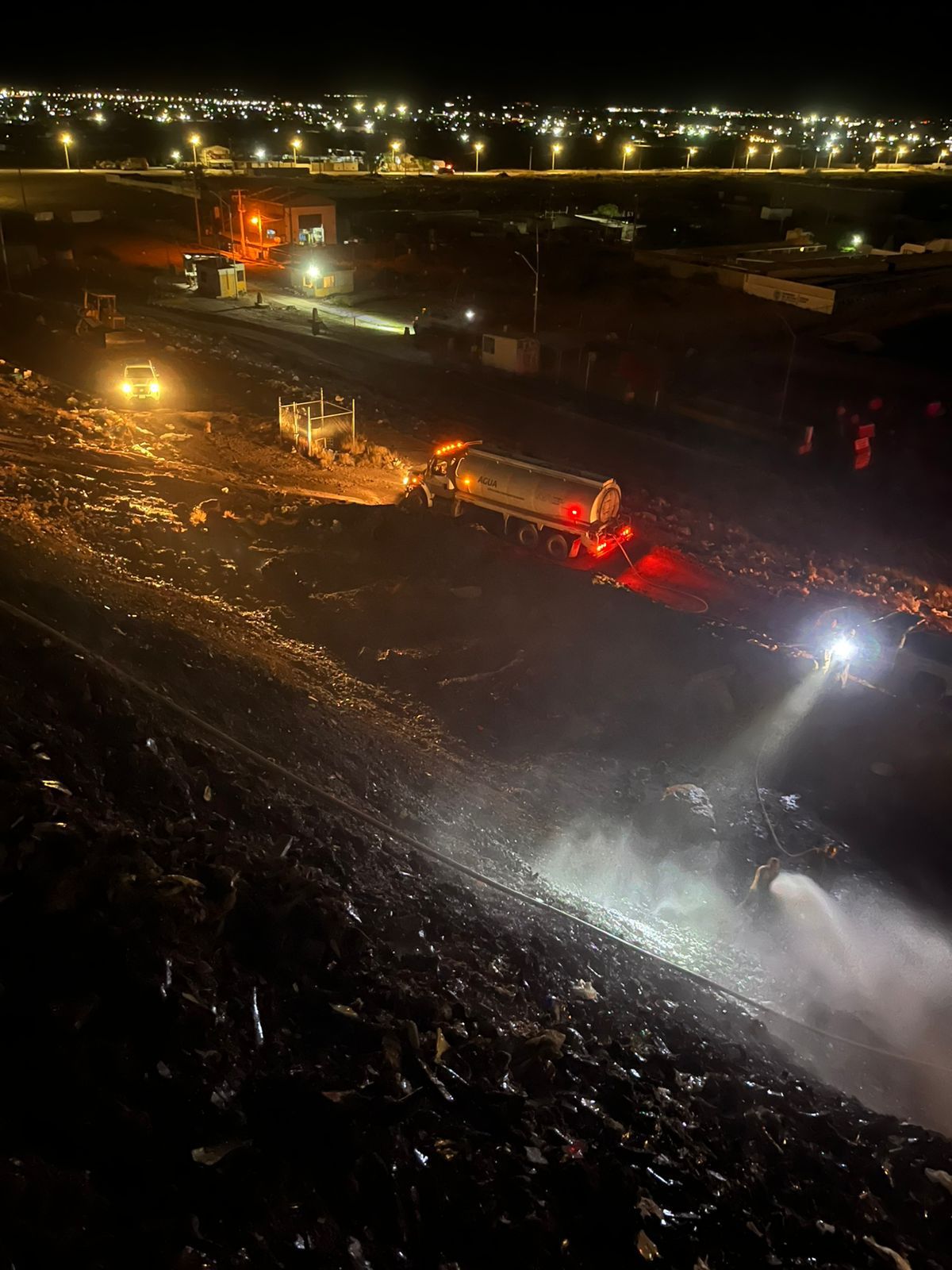 H. Cd. de Chihuahua.- El Gobierno Municipal informó de manera oficial que el incendio registrado la tarde de este viernes en el Relleno Sanitario ha sido completamente controlado y sofocado. Tras varias horas de intensas maniobras por parte del Cuerpo de Bomberos y brigadas de emergencia, se logró eliminar el riesgo de propagación en las celdas de basura, iniciando de inmediato con las labores de “enfriamiento” para evitar que los puntos de calor internos reactivaran las llamas.