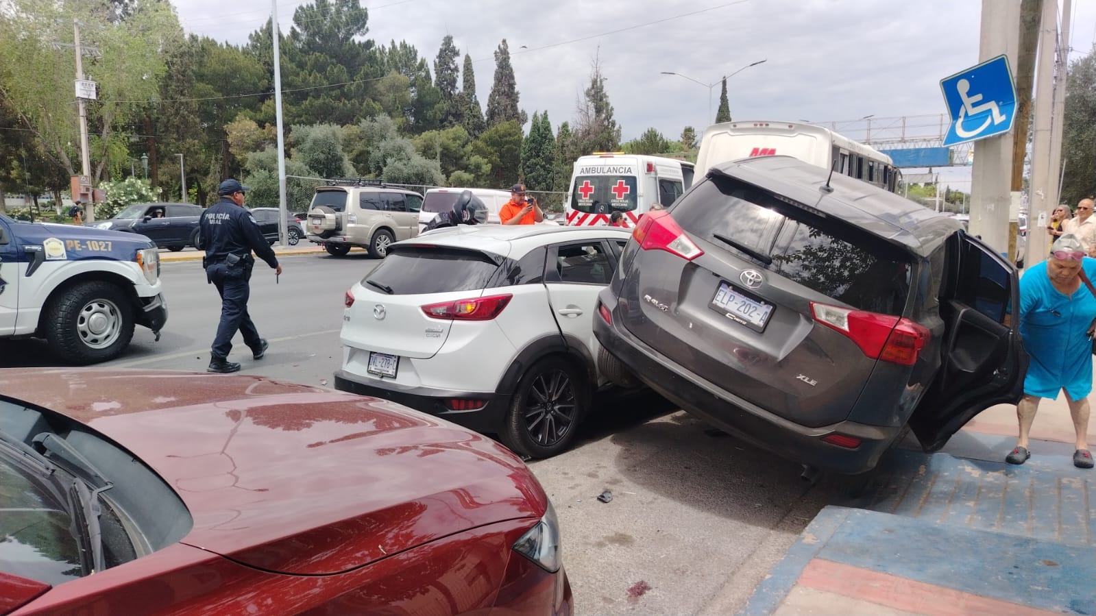 H. Cd de Chihuahua.- Un camión de la ruta Riberas que circulaba a exceso de velocidad provocó un fuerte accidente en el que estuvieron involucrados al menos cuatro vehículos y una persona resultó atropellada.