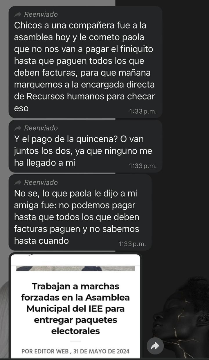 Y esque mencionan que desde ese día no se les han pagado nada, sueldos que van desde los $500 hasta los $9,500 pesos y que solo fueron ilusiones para estos ciudadanos, pues mencionan que el Instituto Estatal Electoral solo pone trabas para no pagarles.