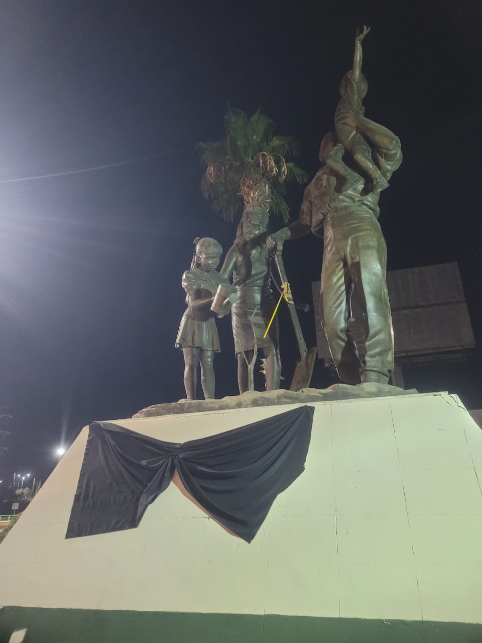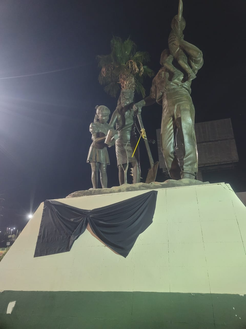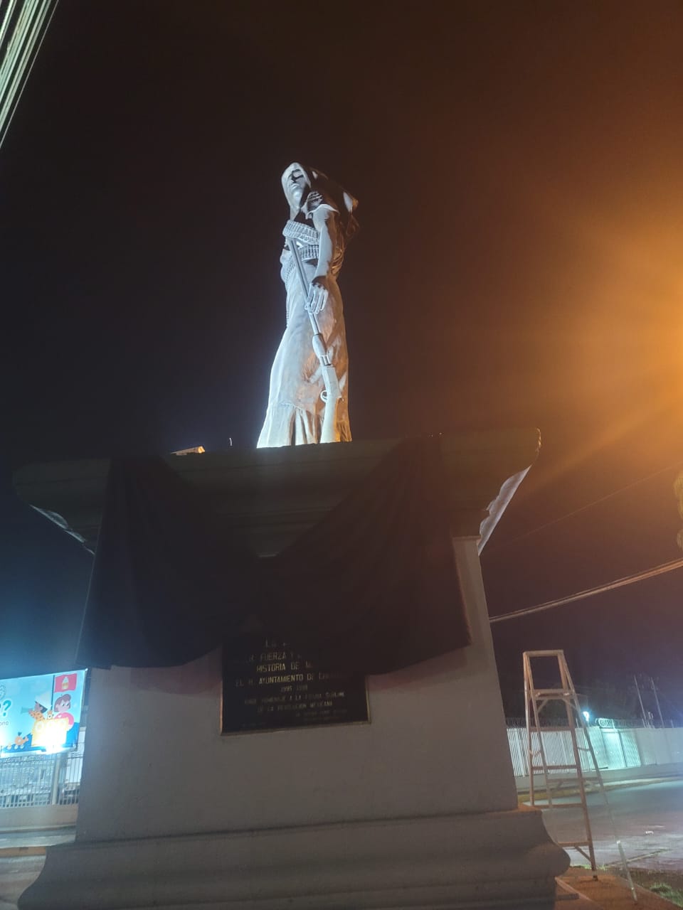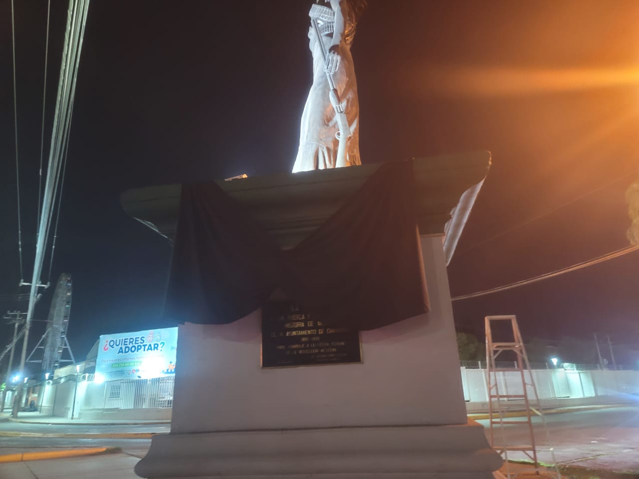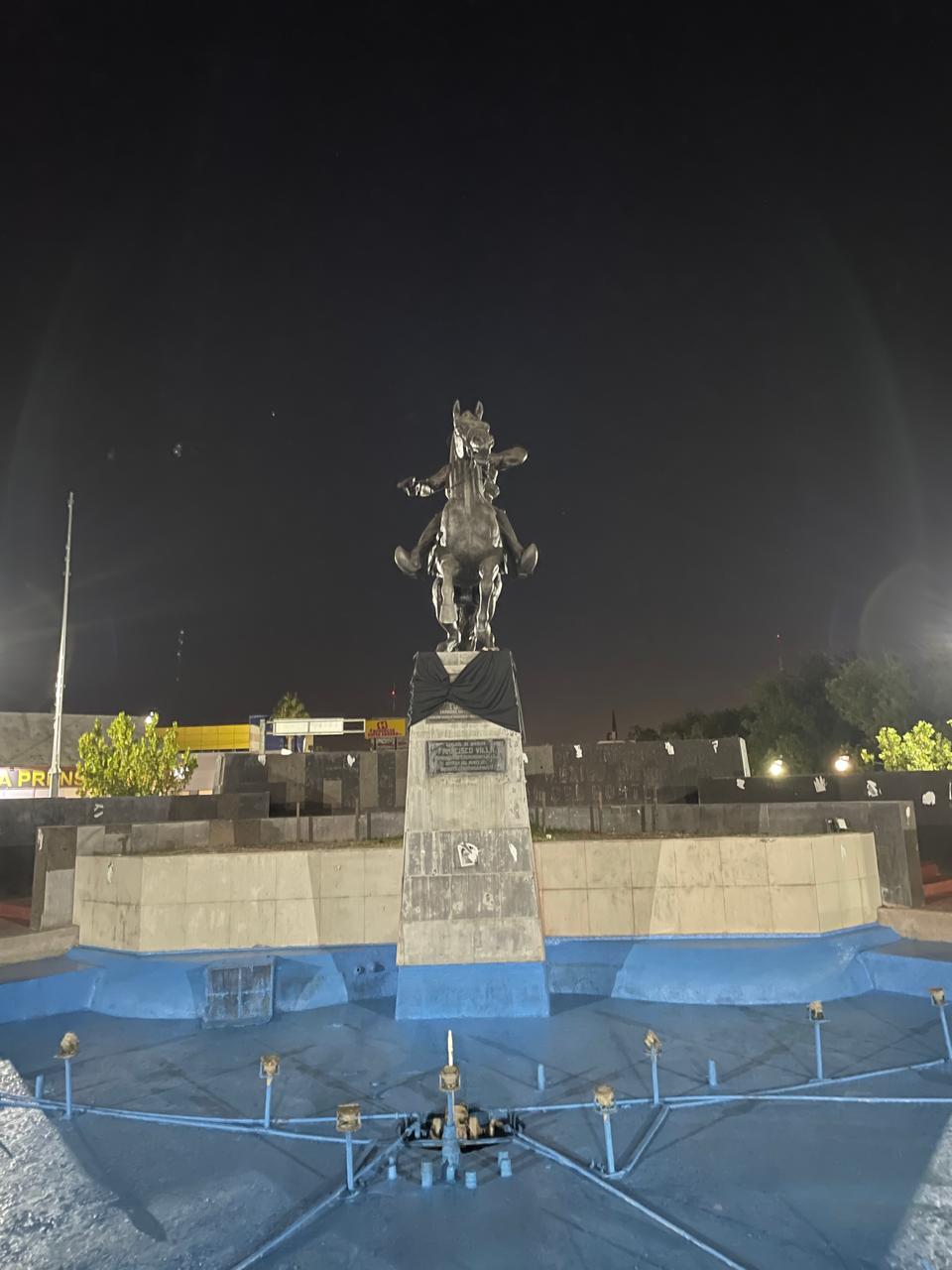 Chihuahua, Chih.- En la ciudad de Chihuahua, varias estatuas del centro amanecieron con moños negros, un acto simbólico de protesta el día en que Claudia Sheinbaum asume la presidencia de México.