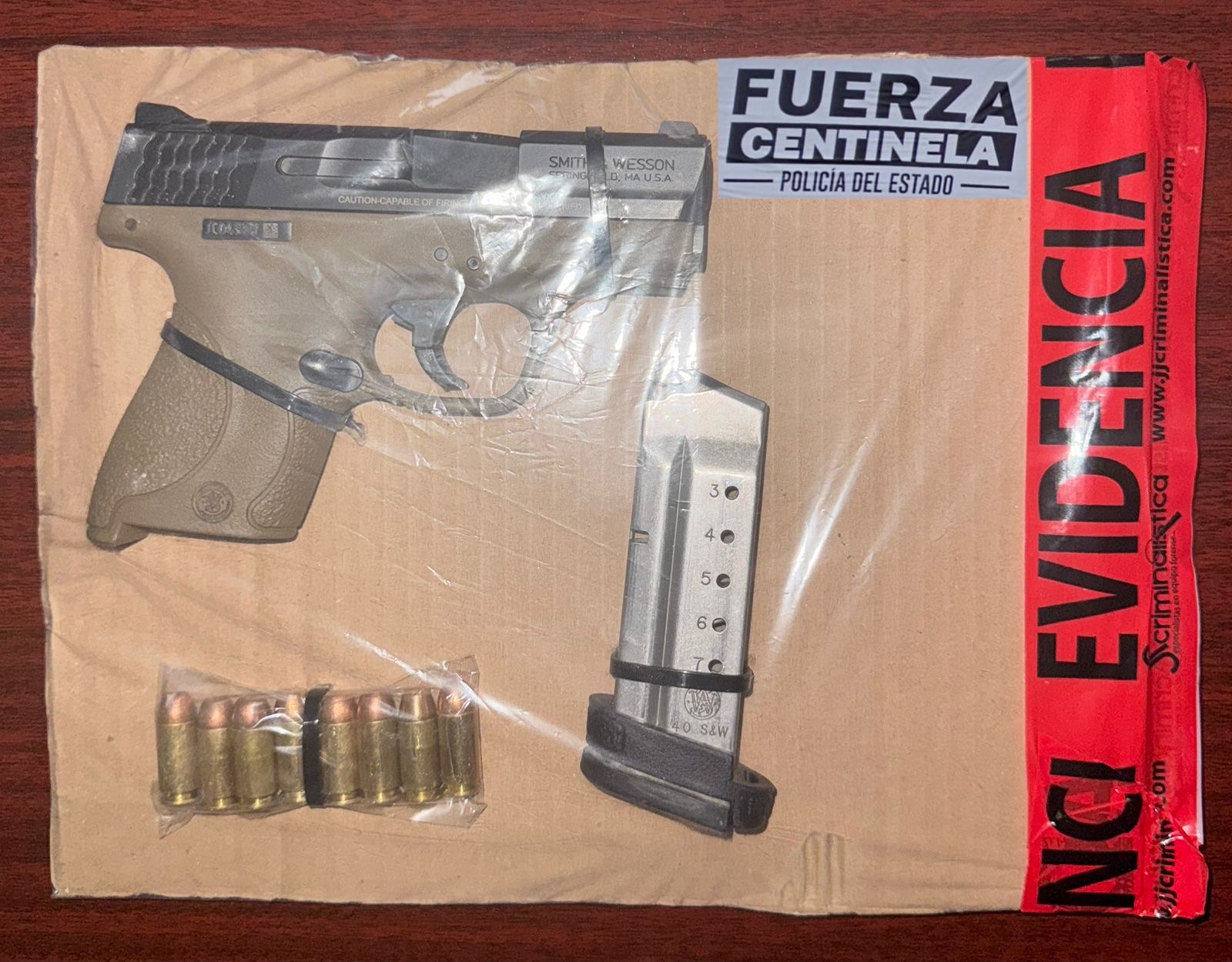 Además, al interior del vehículo se localizó un arma de fuego calibre .40 mm, con un cargador café abastecido con 8 cartuchos, por lo que, en conjunto con el anterior aseguramiento, fueron arrestados formalmente y puestos a disposición del Ministerio Público.