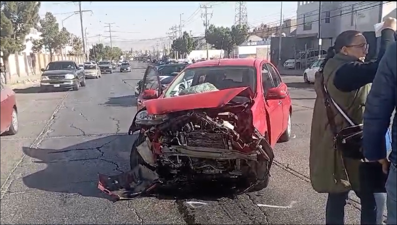 Chihuahua, Chih.- Un aparatoso accidente vial sacudió el cruce de la avenida Juan Escutia y el bulevar El Saucito, dejando a dos mujeres lesionadas y causando un caos vehicular en la zona.
