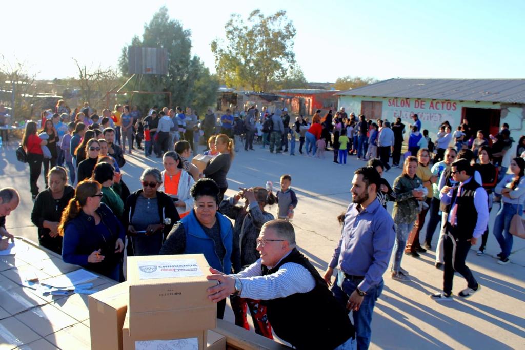 Más de cien personas acudieron al salón Ejidal Chepe en la conocida vieja estación del tren, en el municipio de Ojinaga, donde convivieron con el diputado Ismael Pérez Pavía quien les hizo la entrega de apoyos alimentarios.