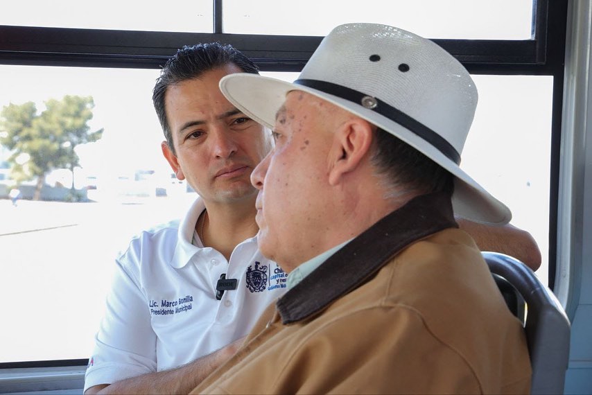 Chihuahua, Chih.- El Alcalde, Marco Bonilla dio a conocer en sus redes sociales que este lunes asistió a sus labores en el transporte de ruta troncal Bowi como parte de la campaña de la semana de la tierra y así reducir la emisión de gases a la atmósfera al no utilizar el automóvil.