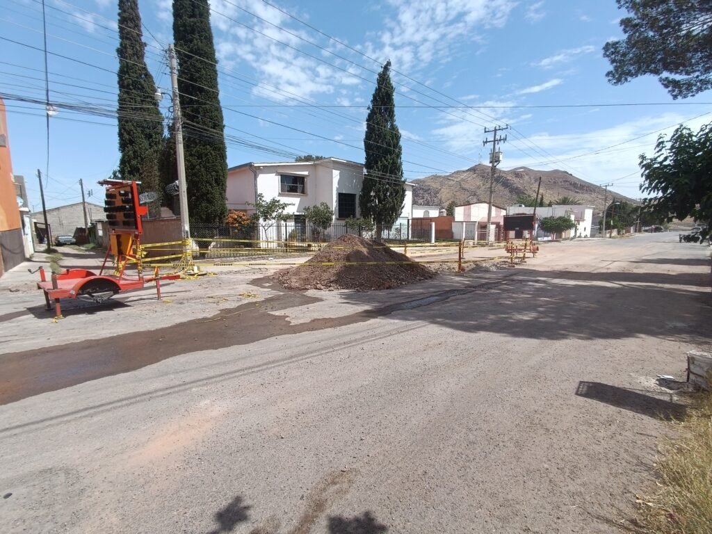 Trabajadores de La Junta Municipal de Agua y Saneamiento arribaron a las calles 53 y media y calle Ojinaga de la colonia Palestina para atender la fuga de agua que han reportado ciudadanos desde hace dĂas.