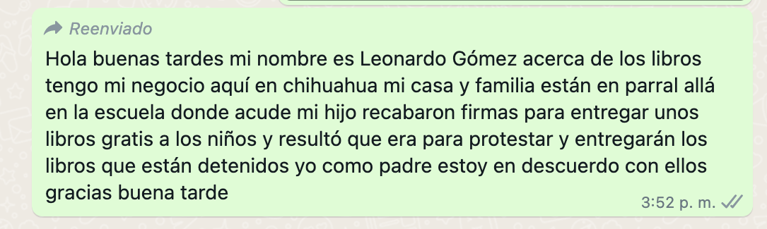Un padre de familia se puso en contacto con este medio de comunicación e indicó que se preguntó a los líderes de familia “¿quieres libros gratuitos?”, a lo que varios afirmaron al cuestionamiento, por lo que posteriormente les entregaron un formulario para llenarlo.