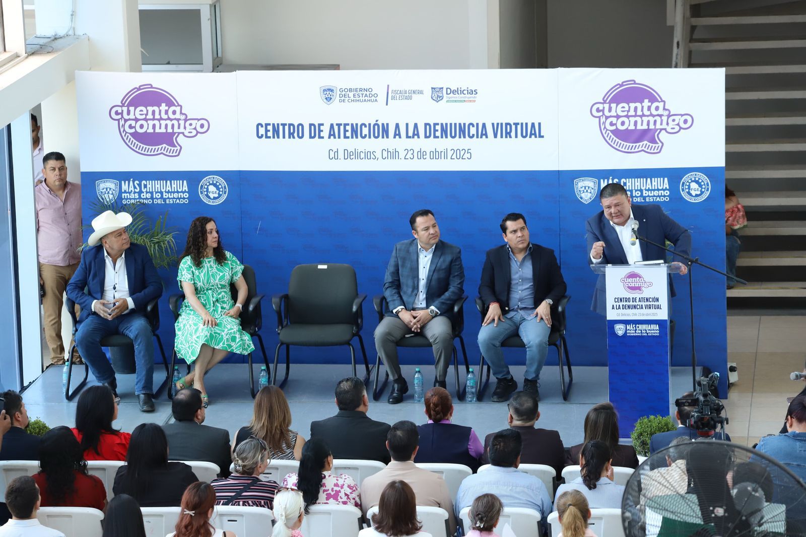 Delicias – El Fiscal General del Estado, César Jáuregui Moreno y el Presidente Municipal de Delicias, Jesús Valenciano, inauguraron el Centro de Atención a la Denuncia Virtual instalado