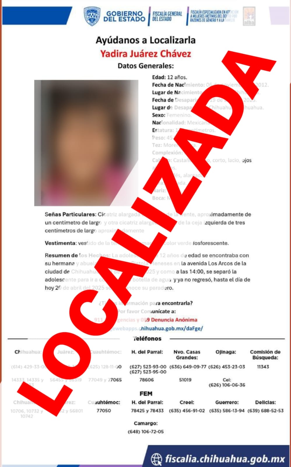 H. Cd de Chihuahua – La activación del Protocolo Alba, permitió a la Fiscalía Especializada en Atención a Mujeres Víctimas del Delito por Razones de Género y a