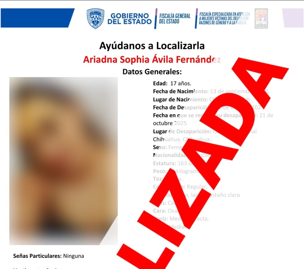 Derivado de la pronta activación del Protocolo Alba, fue localizada sana y salva la menor de 17 años de edad e iniciales A.S.A.F., quien contaba con reporte de