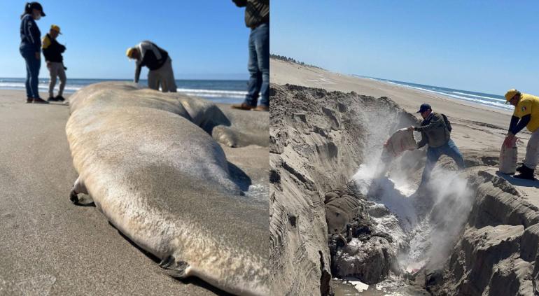 H. Cd. de Chihuahua.- Autoridades atienden hallazgo de ballena muerta en Sinaloa. Habitantes del municipio de Rosario reportaron a las autoridades el hallazgo de una ballena sin vida