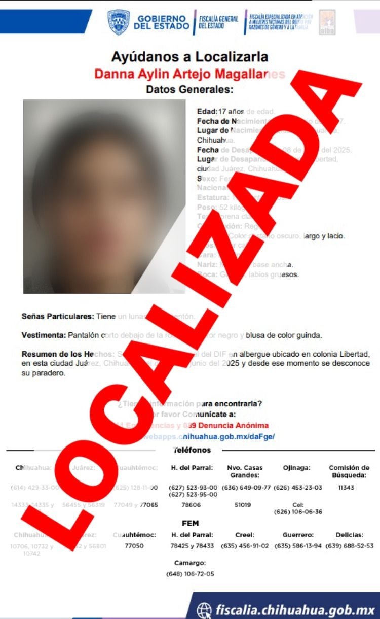 La Fiscalía Especializada en Atención a Mujeres Víctimas del Delito por Razones de Género y a la Familia (FEM), localizó sana y salva a la adolescente de iniciales