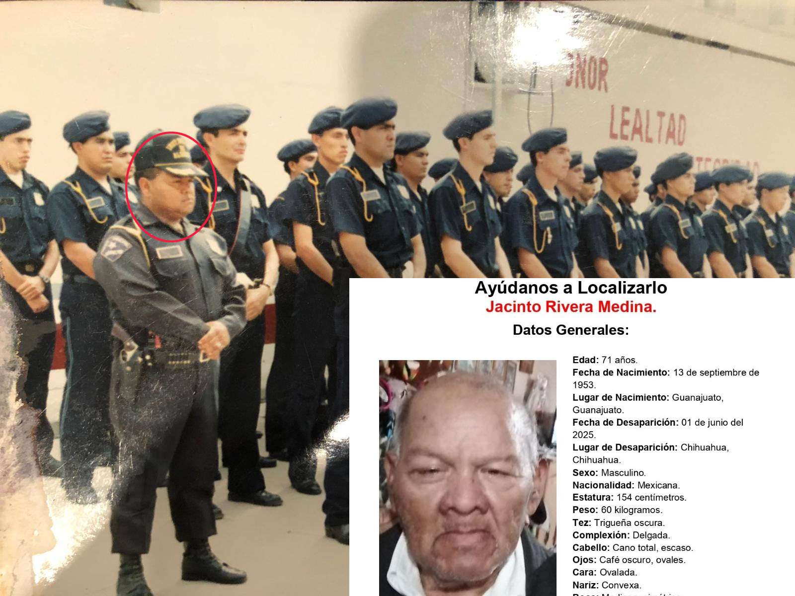 Jacinto Rivera Medina, uno de los primeros instructores que formaron parte de la Policía Municipal de Chihuahua, se encuentra desaparecido desde el pasado domingo, según confirmaron autoridades estatales
