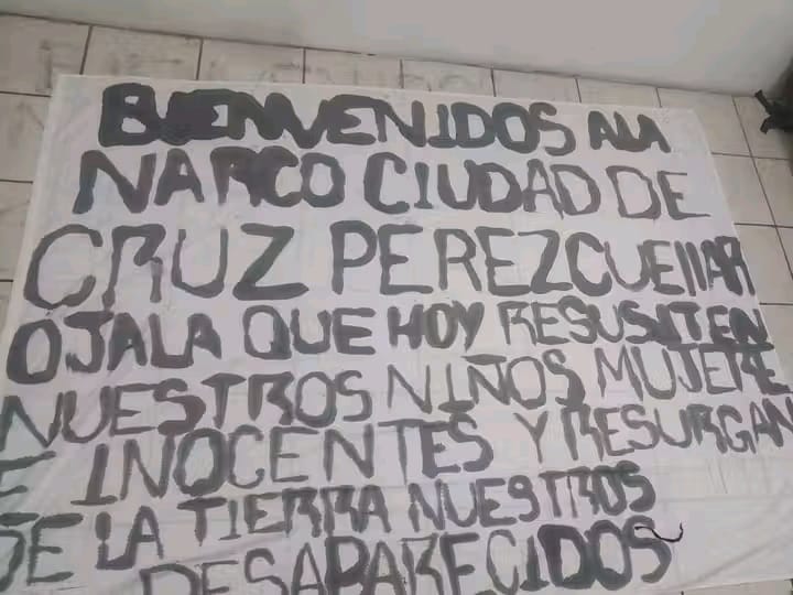 “Bienvenidos a la narco ciudad de Cruz Pérez Cuellar”