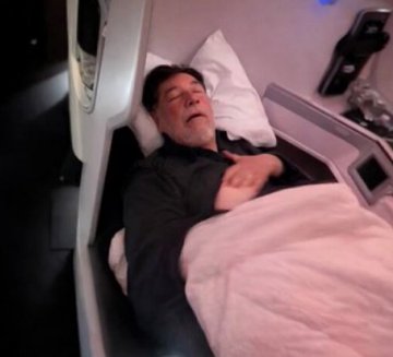 El senador Gerardo Fernández Noroña fue fotografiado durmiendo en un vuelo de primera clase que viajaba de Roma a la Ciudad de México, imagen difundida por Grupo Fórmula