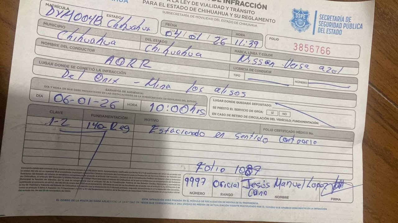 H. Cd. de Chihuahua.- Vecinos de la colonia Villas del Real denunciaron que autoridades de vialidad están aplicando multas directamente en los domicilios a vehículos estacionados frente a