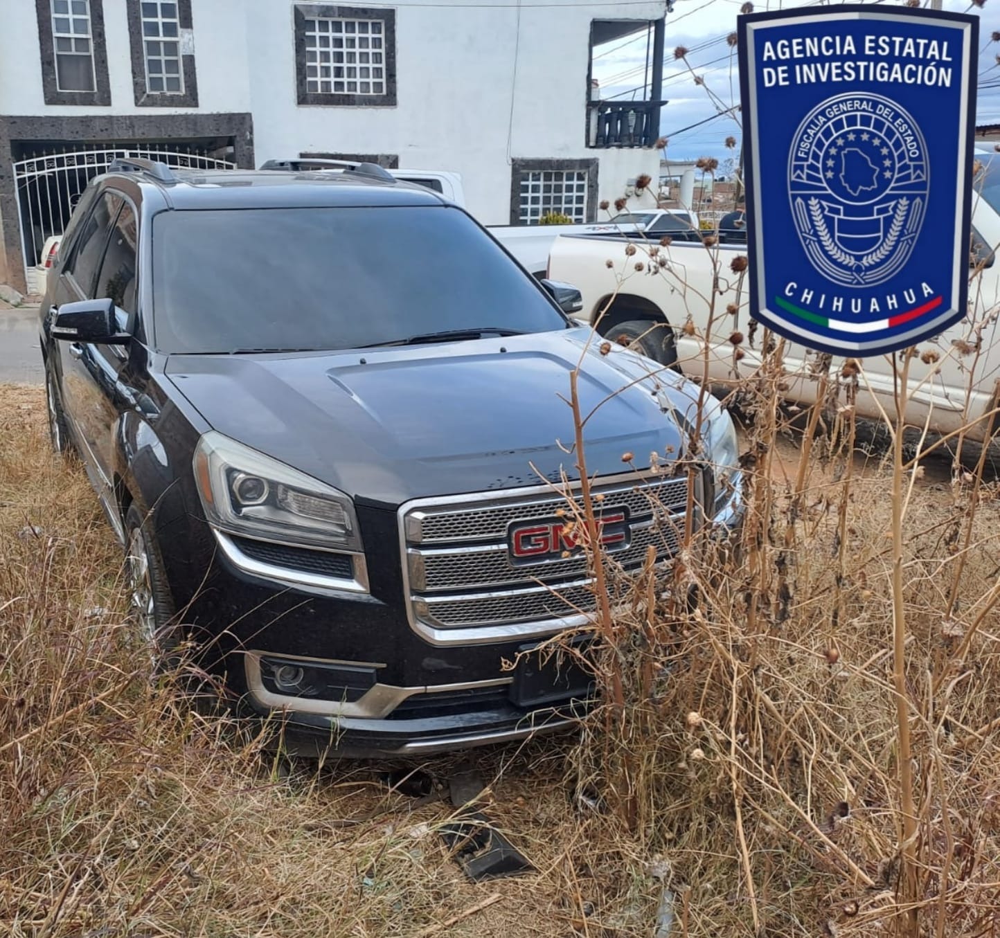 Elementos de la Agencia Estatal de Investigación (AEI), recuperaron una camioneta de la marca GMC, línea Acadia, modelo 2014, de color negro, que fue robada el 09 de