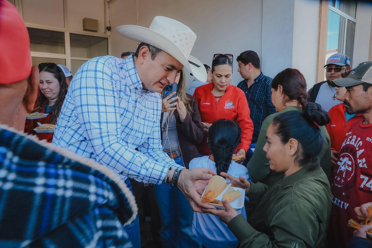 H. Cd. de Chihuahua.- El alcalde de Chihuahua, Marco Bonilla, cumplió su compromiso con las familias de Guerrero al compartir tamales y champurrado con motivo del Día de