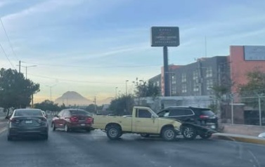 H. Cd. de Chihuahua.- Un choque entre dos vehículos desató caos vial en la vialidad Sacramento, casi al llegar a Teófilo Borunda, en el sentido norte–sur, donde una