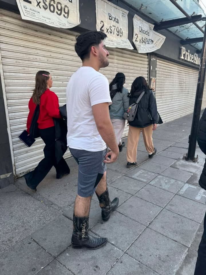 Un adolescente se convirtió en el centro de atención este jueves 1 de enero de 2026 al caminar por las concurridas calles del centro histórico de la ciudad