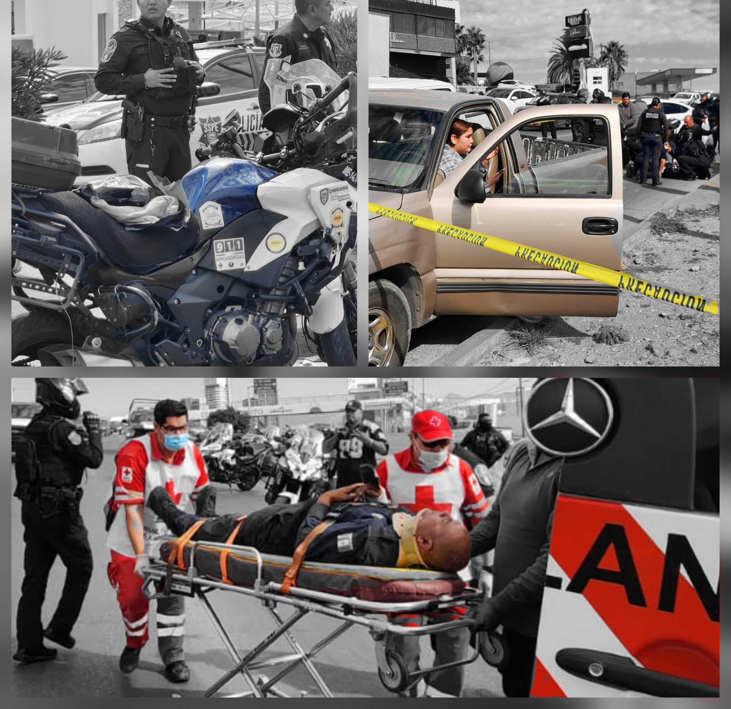 H. Cd. de Chihuahua.- Un agente del grupo motorizado de la Policía Vial resultó con lesiones de consideración luego de chocar contra una camioneta pick up dorada que