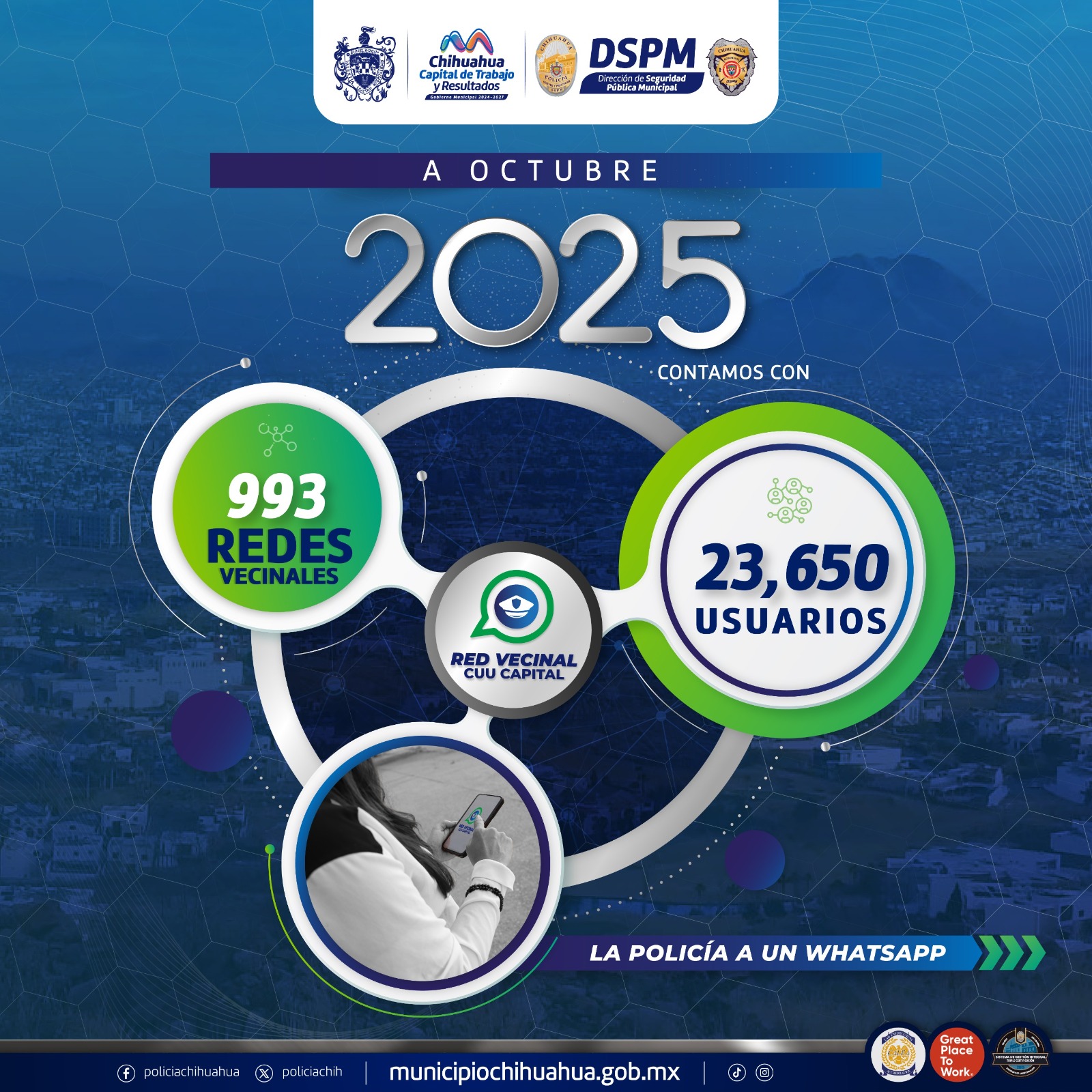 H. Ciudad Chihuahua, Chih., a 21 de octubre de 2025.– El programa Red Vecinal de la Dirección de Seguridad Pública Municipal (DSPM) continúa creciendo en la ciudad y