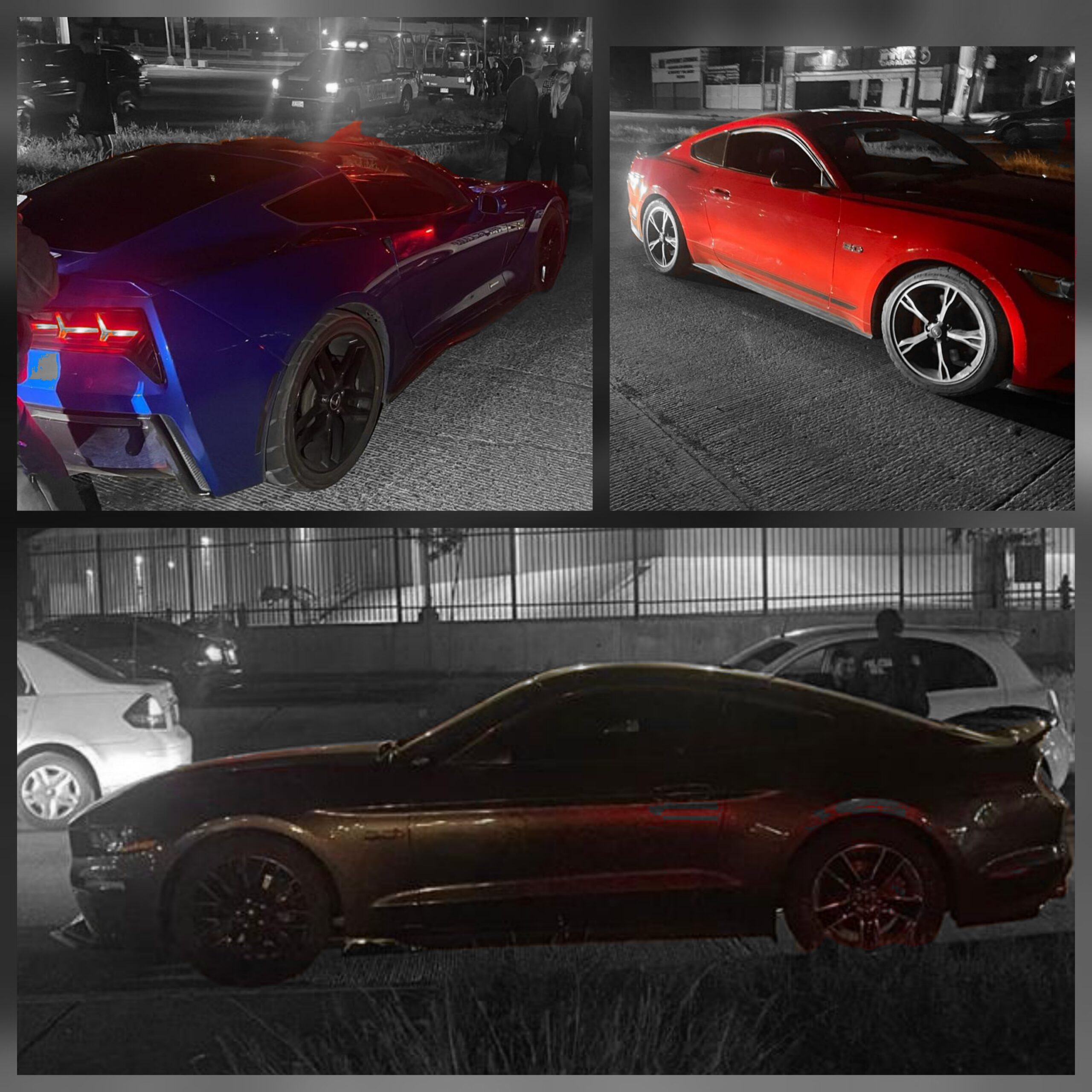 H. Cd. De Chihuahua.– Elementos de la Policía Vial aseguraron tres vehículos deportivos que participaban en arrancones al norte de la ciudad, entre ellos un Corvette y dos