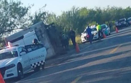 H. Cd de Chihuahua.- El tráfico en el kilómetro 33 de la carretera a Ciudad Juárez quedó completamente paralizado esta mañana tras la volcadura de un camión de