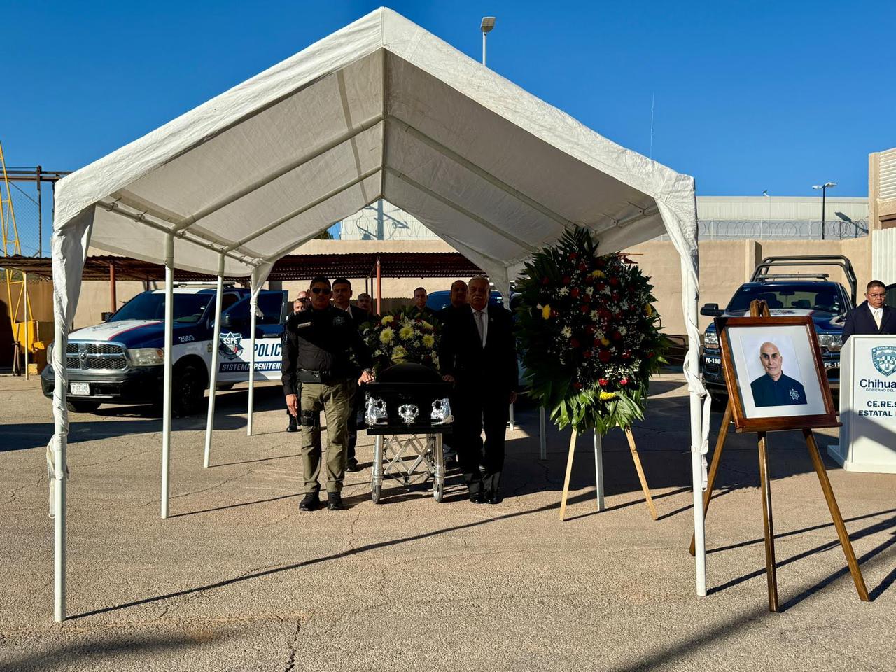 H. Ciudad de Chihuahua, Chih.- La Secretaría de Seguridad Pública del Estado (SSPE) realizó una ceremonia fúnebre en memoria de Gerardo Rubio Gallegos, elemento adscrito al Centro de
