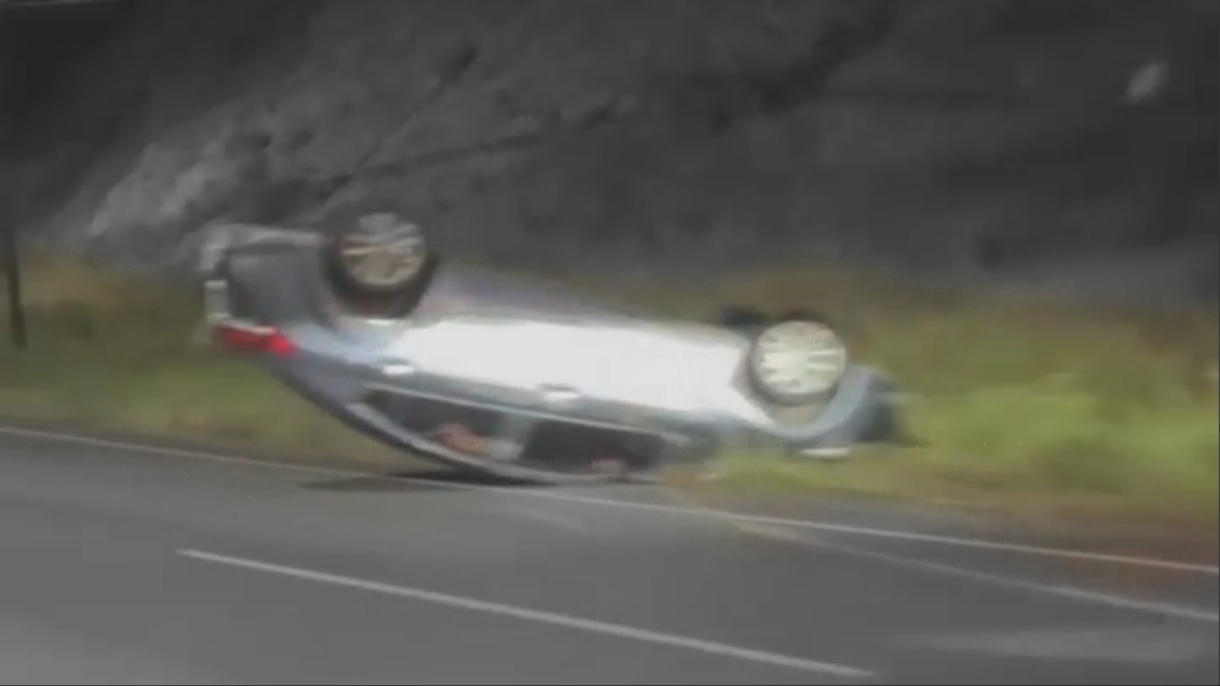 H. Cd de Chihuahua.– Una aparatosa volcadura se registró en la medianoche, sobre la prolongación Teófilo Borunda, justo frente a la Universidad Politécnica de Chihuahua, lo que generó