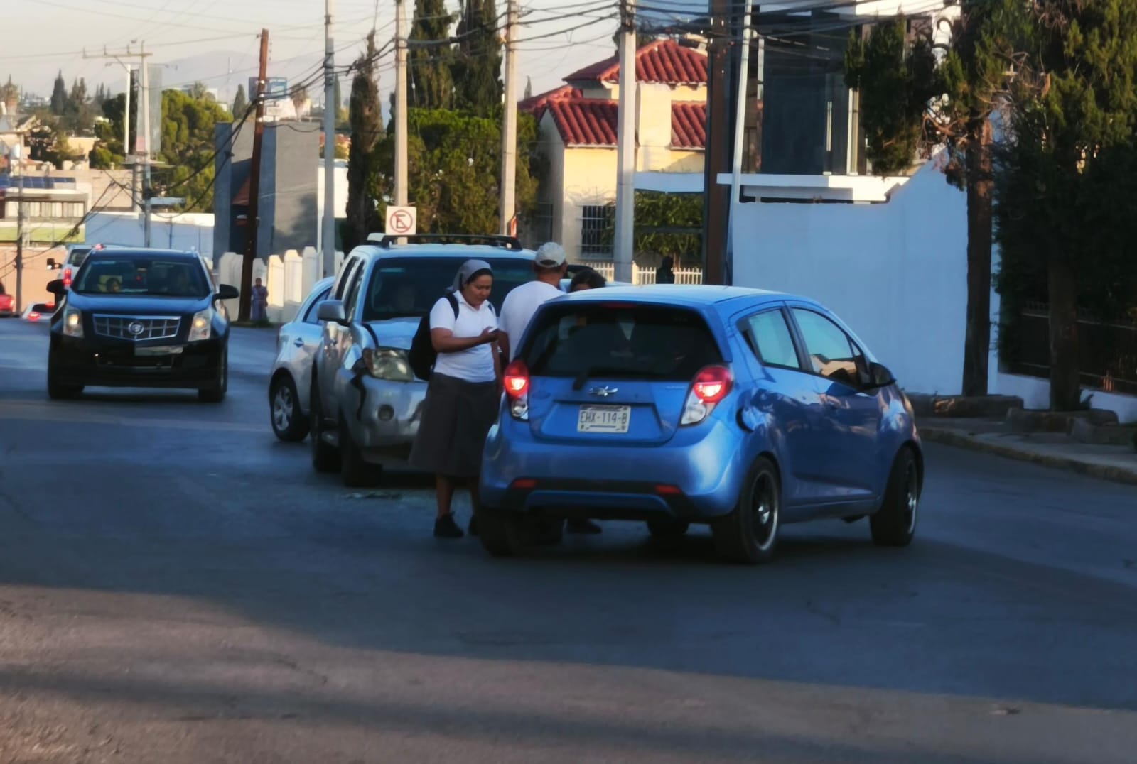 H. Cd de Chihuahua.- Durante la mañana de este jueves se registró un accidente vial sobre la avenida Ernesto Talavera, donde una camioneta Nissan Pathfinder gris y un