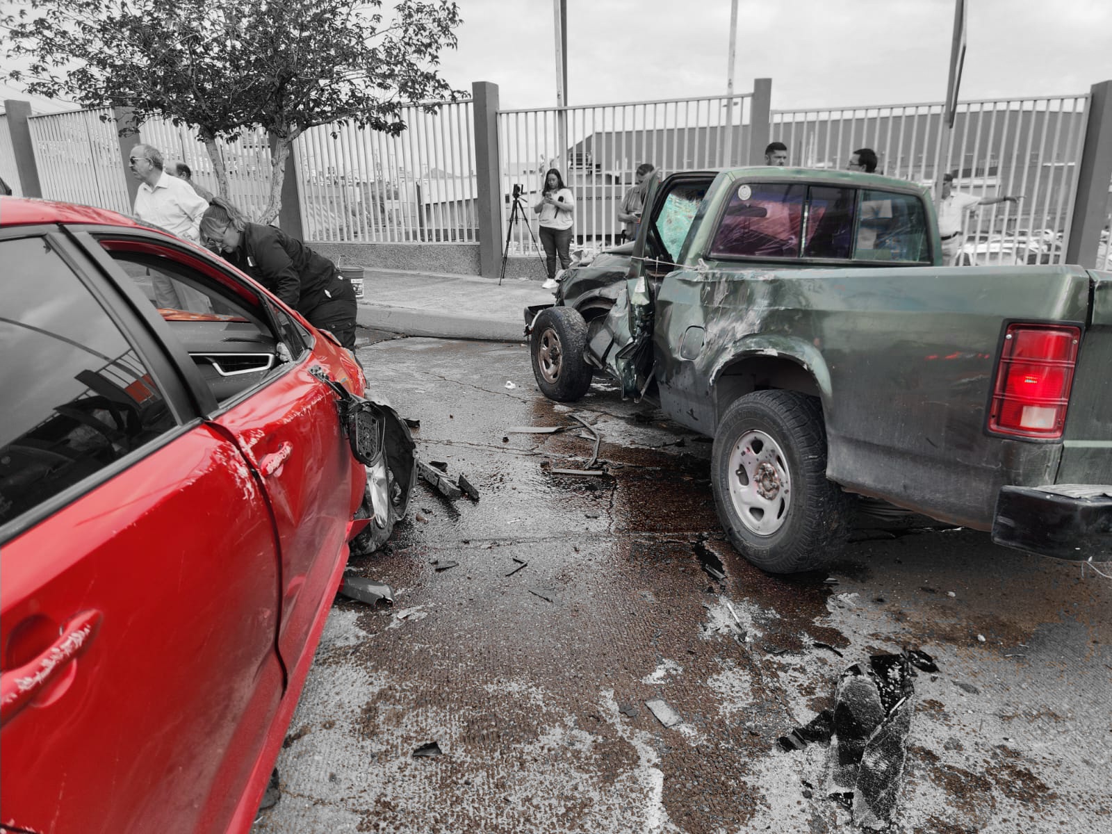 H. Ciudad de Chihuahua, Chih.- Un aparatoso accidente se registró en el cruce del Periférico de la Juventud y la avenida Juan Escutia, donde el conductor de un