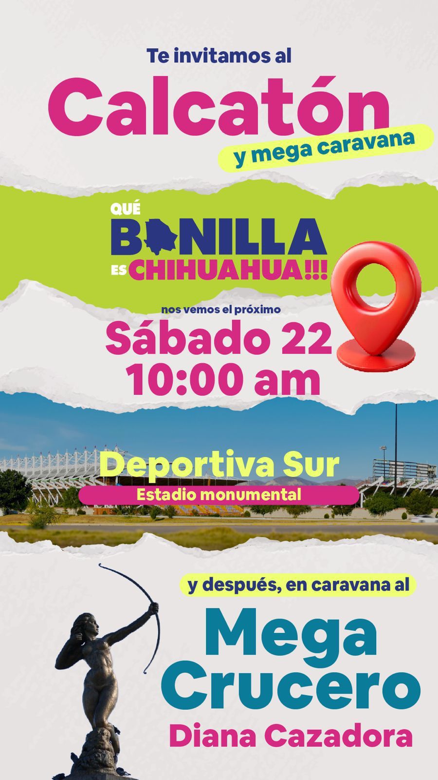 Circula en redes sociales una invitación a participar en el evento “Calcatón y Mega Caravana” en Chihuahua Capital, bajo el eslogan “QUE BONILLA ES CHIHUAHUA!!!”. La actividad está