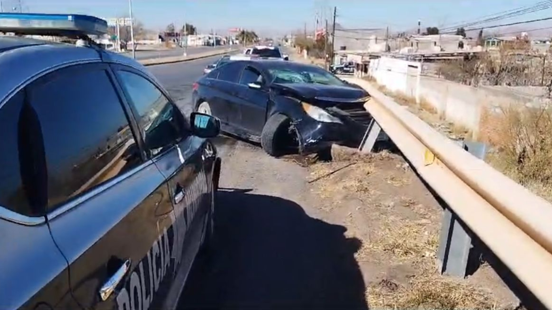 Chihuahua, Chih.- Una persecución entre elementos de seguridad y unos jóvenes que viajaban en un altima inició desde el Fuentes Mares y terminó en el periférico R. Almada.